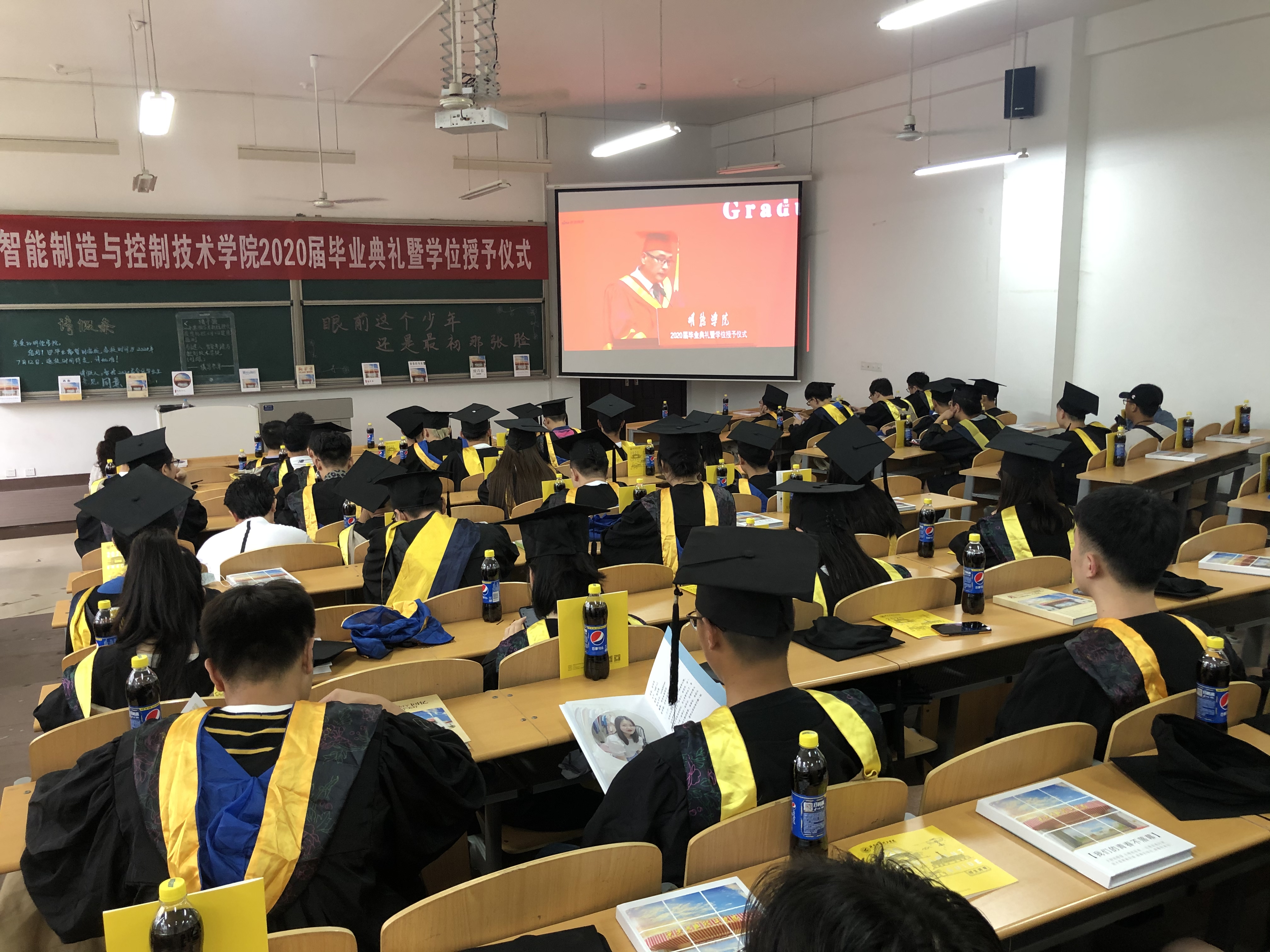 7月12日上午九时,智能制造与控制技术学院在4#教学楼101教室,隆重举行学院2020届毕业典礼暨学位授予仪式。因疫情防控要求,明德学院2020届毕业生毕业典礼暨学位授予仪式在学院明志楼中厅隆重举行,本次典礼采用主副会场加线上直播的方式举行,各二级学院分会场通过新媒体平台对毕业典礼进行了“云”直播。学院副院长朱延波,办公室主任张啭啭,党总支书记陈雪彬,各专业负责人及教师代表,学院2020届毕业生150余人出席了此次分会场的典礼,典礼由毕业班辅导员刘雄主持。
