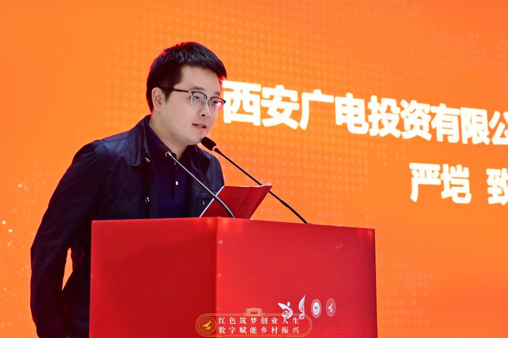 西安广电投资有限公司投资部部长严垲致辞,他表示愿意运用西安广电产业集团丰富的媒体资源和专业团队共同推进“数字电商助力乡村振兴”活动,不断深化多种媒介渠道与项目本体的深度融合,为数字电商产业的蓬勃发展贡献自己的力量。