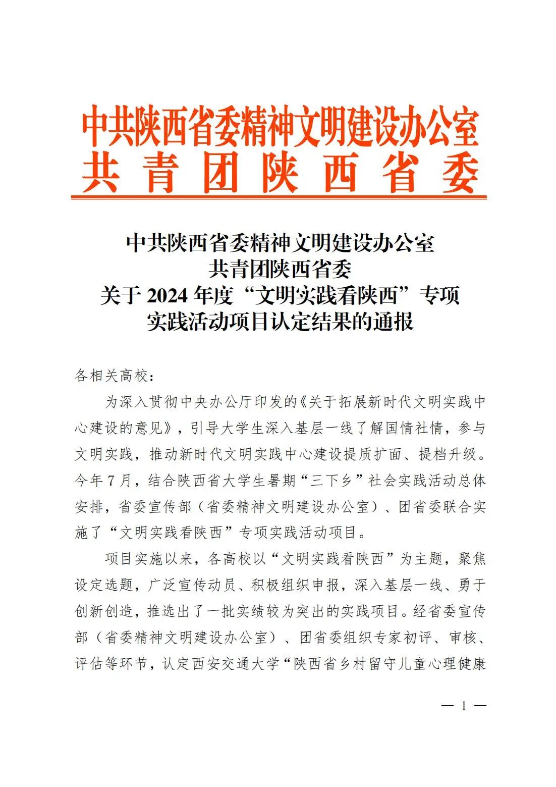 学校社会实践团队获2024年度“文明实践看陕西”专项实践活动项目“优秀”认定