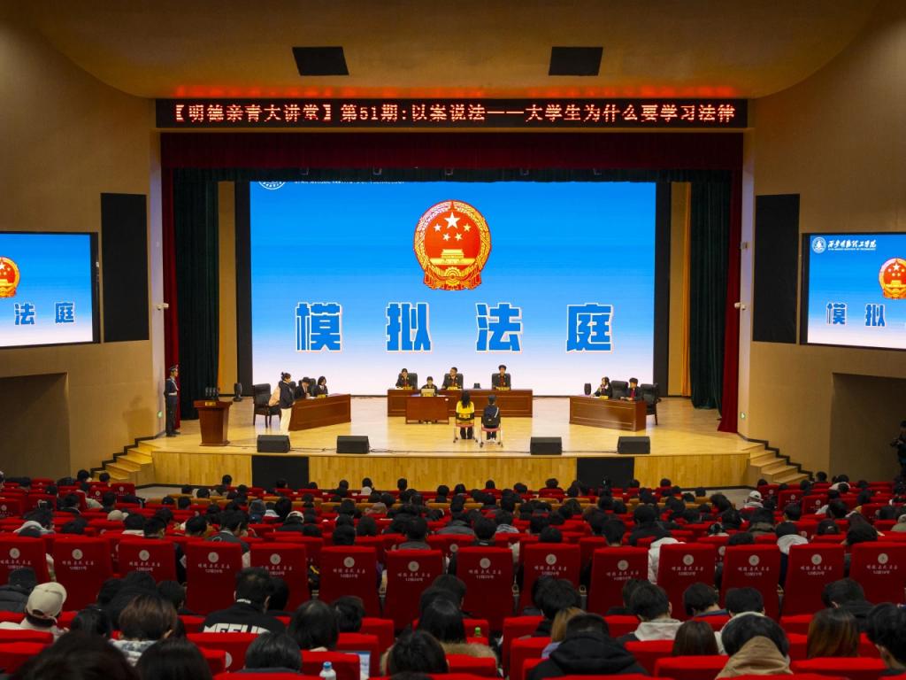 12月4日晚18:40,在四季廊桥报告厅开展了宪法宣传周系列讲座暨模拟法庭活动,法庭上以事实为依据、以法律为准绳,深入了解法庭审判的各个环节,深刻体会宪法权威。模拟法庭结束后,北京市(西安)康达律师事务所合伙人刘星律师对本次模拟法庭进行了精彩的点评,活动强化学生们运用法律维护自身权益的意识。