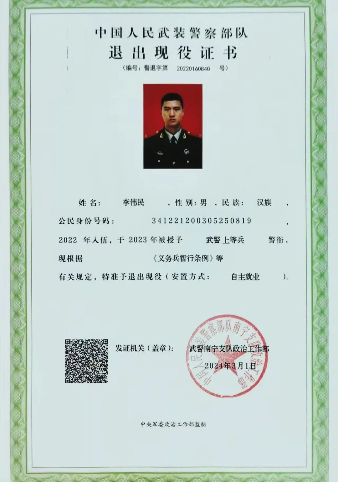 回首军营时光,满是汗水、泪水与欢笑。李伟民从懵懂少年成长为坚毅军人,自律、坚韧、团结、担当皆铭刻于心。他将永记军营培育,以军人风姿迎未来挑战,为己之价值、国之昌盛奋力前行,因曾为军人,此乃一生荣耀!