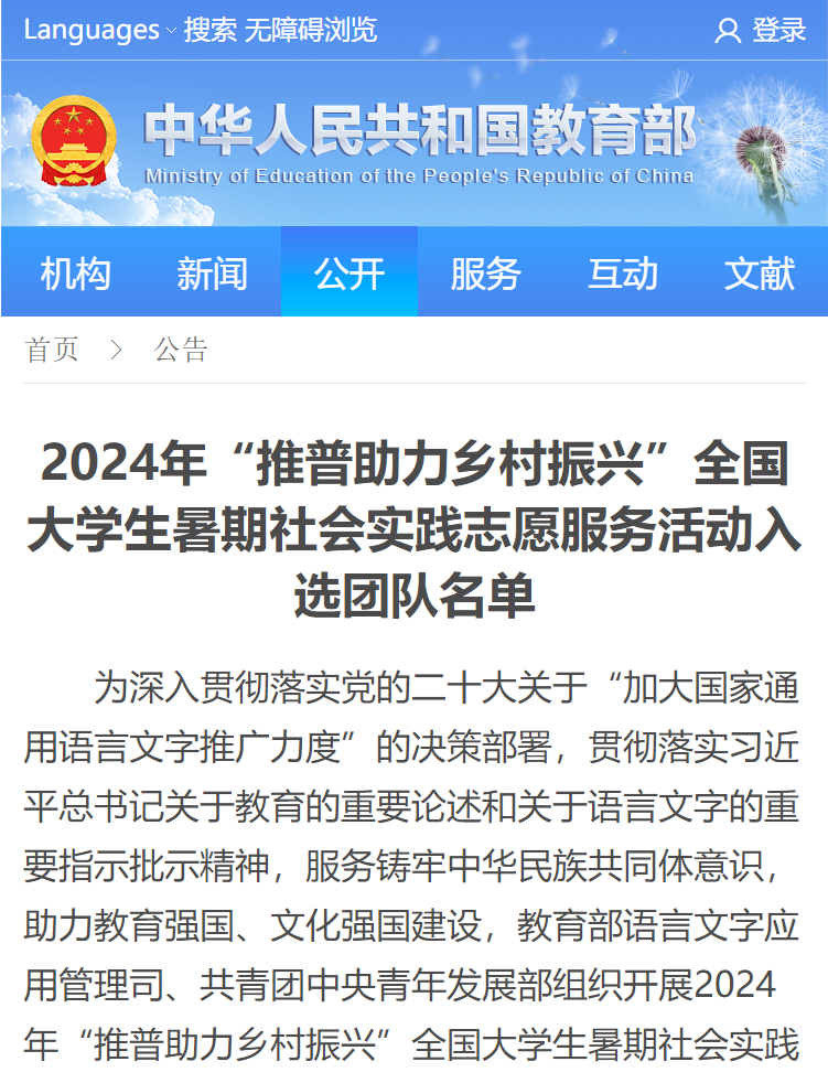 “九州(中国)-九州(中国)赴陕西镇巴推普助力乡村振兴服务队”与“九州(中国)-九州(中国)赴新疆伊宁市巴彦岱镇推普助力乡村振兴服务队”成功立项国家教育部“推普助力乡村振兴”全国大学生暑期社会实践项目。