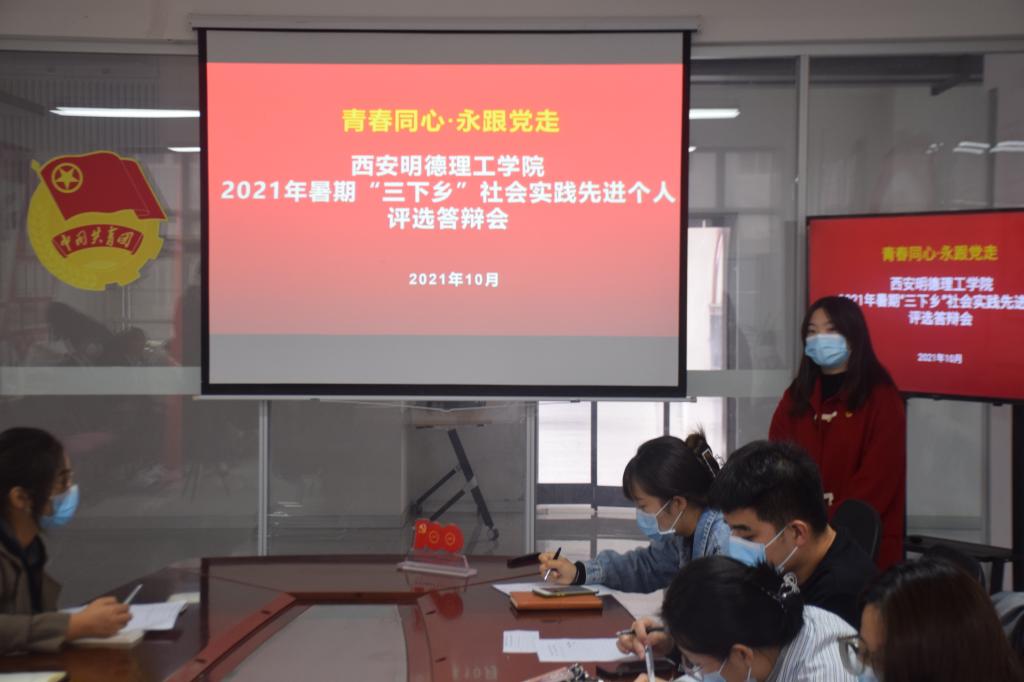 为表彰先进,鼓励广大青年参与到“三下乡”社会实践当中去。近日,我校青年志愿者服务团于明志楼北304举办2021年大学生暑期“三下乡”社会实践先进个人答辩会。