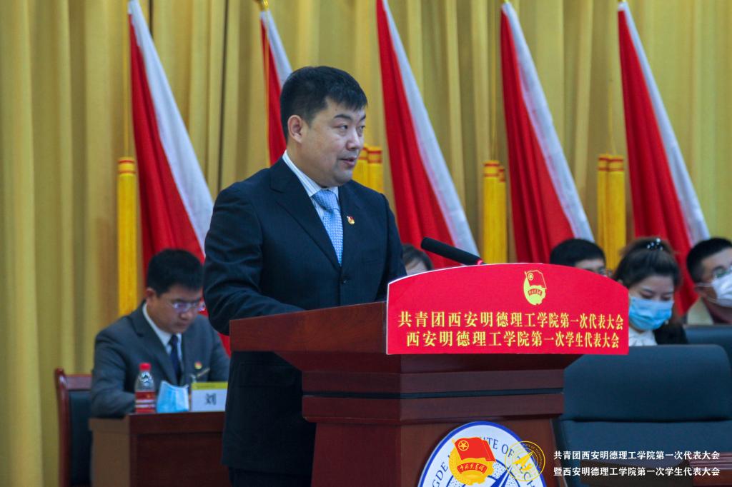 共青团陕西省委基层组织建设部部长张建宽在讲话中充分肯定了我校共青团取得的丰硕成果和作出的积极贡献,并提出了三点要求:一是要强化青年政治引领,担当时代责任。二是要扎实推进共青团改革,明确共青团的政治定位。三是要加强团的自身建设,提高组织力、凝聚力和战斗力。