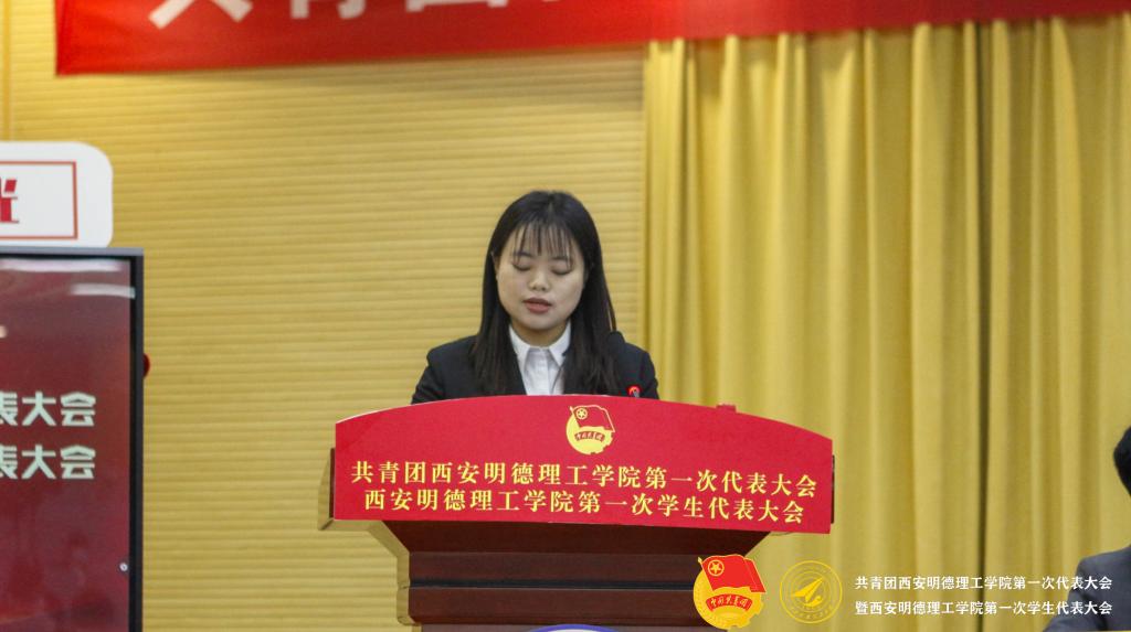 校团委书记童杨梓作题为《踏上新征程肩负新使命 实现新目标为建设特色鲜明、国内一流,具有一定国际知名度的应用型民办大学贡献青春力量》的共青团工作报告。