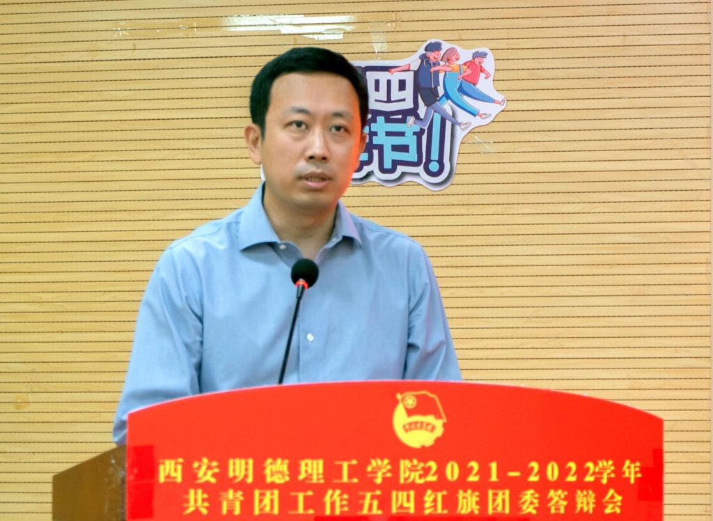 为进一步深化共青团育人工作体系,推进各级团组织建设,搭建工作交流、风采展示、互学互鉴的平台,以评促建,以评促改,营造比学赶超的良好氛围,我校于建德楼203报告厅顺利开展2021-2022年度五四红旗团委答辩会。校党委副书记董昊,各二级学院、学校办公室、党委组织宣传部、党委学生工作部、人力资源处、教务处、后勤管理处、校团委等各院部(处)负责同志、优秀青年学生代表参加了答辩会,会议由校团委刘雄主持。答辩会在网络平台进行了全程直播。