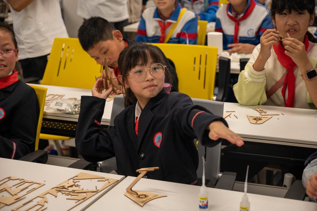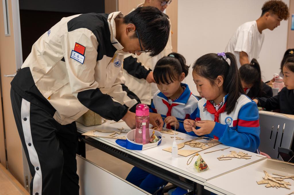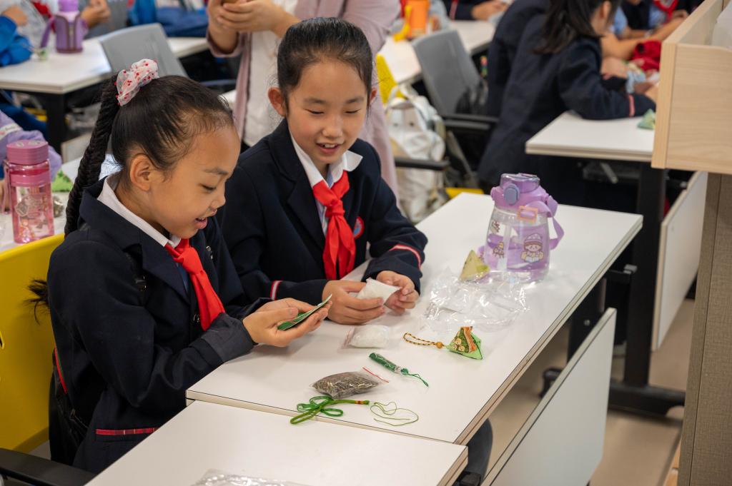 进入校园后,志愿者先带领小葵花们参观了美丽校园;在一号实训楼401教室,开展了端午节历史文化交流分享活动。志愿者为小葵花们讲述了端午节的由来和习俗,为大家分享了制作香囊的方法,锻炼了“小葵花们”动手能力,使他们在情景教学中更加了解端午节的传统习俗,懂得了中华传统文化的博大精深。随后,学校航模队的志愿者们为“小葵花”们分享了精彩的航空科普知识,志愿者从航模的发展历程、结构构造、个体特点等方面进行了讲解,并带领“小葵花”们自己动手,制作了专属飞机小模型,激发了他们的航天梦。