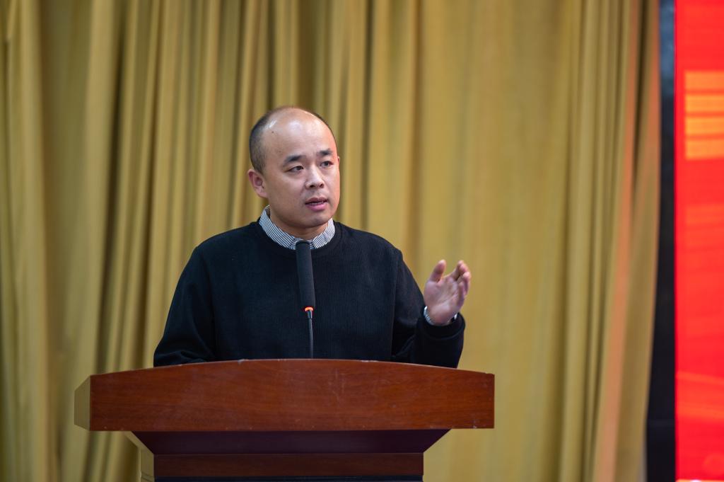 童杨梓总结讲话。他首先感谢上一届学生干部的辛勤工作,感谢大家为全校学生日常管理、安全稳定、质量提升等方面做出的突出贡献。并对新一届学生干部提出了三点要求:一是要加强专业学习,学生干部的第一身份是学生,学习是学生的第一要务,学生干部要在方方面面优秀,学业也要走在前列;二是要担当学生表率,遵守学校章程,履行服务义务,严守组织纪律,全心全意为同学服务;三是要以磨练意志为目的、以提高素质为理想,牢记明德、亲民、至善的校训、热爱组织、为学校学生工作而奋斗,随时准备着站起来能说、坐下来能写、动起来能干,在主动担当作为服务他人中提升自我。