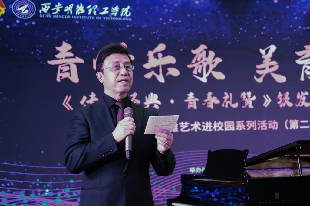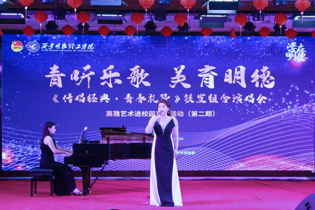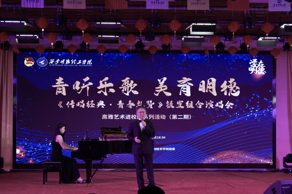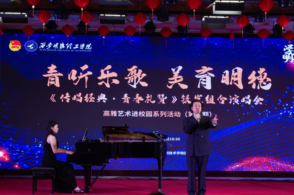 为提高师生艺术欣赏能力,弘扬优秀艺术文化,5月21日,学校在建德楼203报告厅举办了以“青听乐歌 美育明德”为主题的高雅艺术进校园系列活动第二期。来自陕西省音乐家协会、西安市合唱协会、西安音乐学院、西安石油大学音乐系等19名歌唱家为我校师生带来一场震撼人心的视听盛宴。