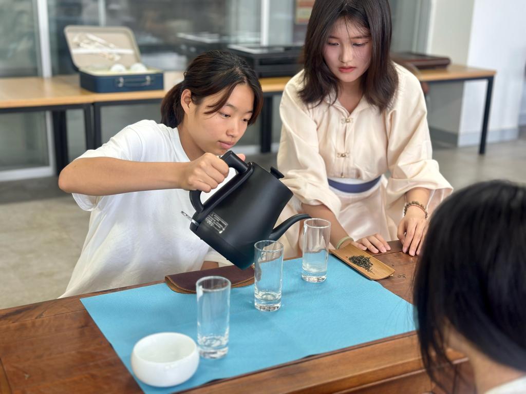 随后,在泡茶体验环节中,学生们亲自动手,体验了从选茶、泡茶到品茶的全过程,学习了茶艺的基本技巧,更在实践中感受到了茶文化的韵味。