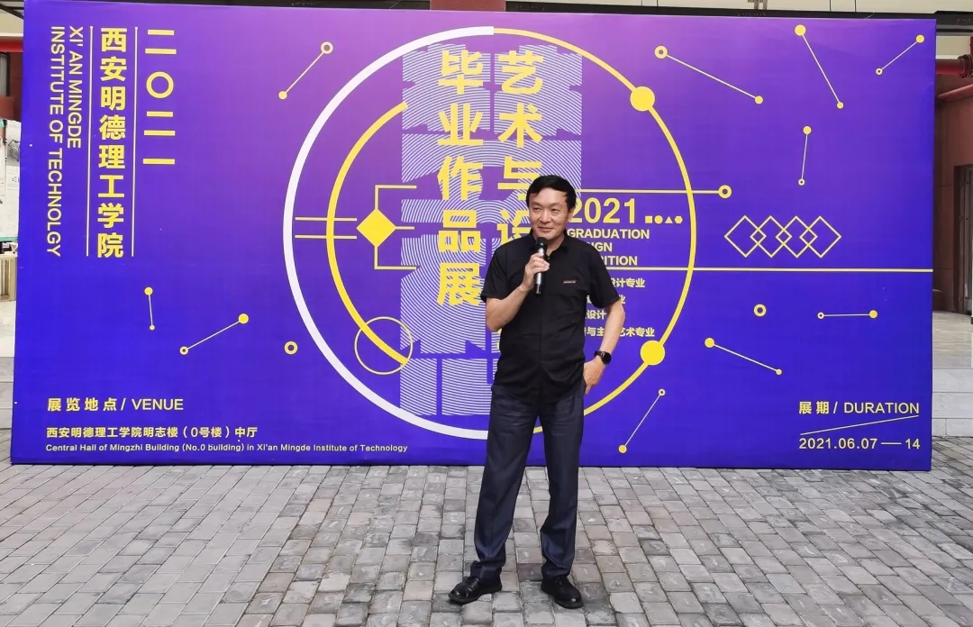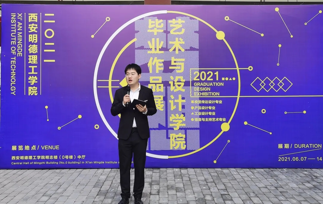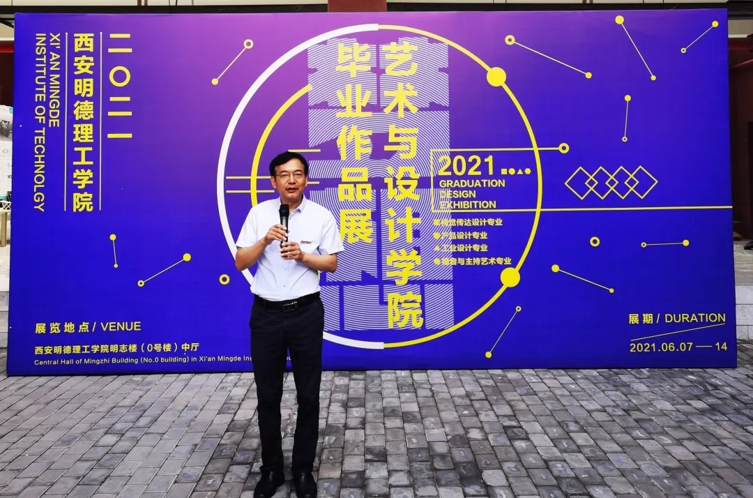 6月7日上午8点30分,九州(中国)-九州(中国)艺术与设计学院在明志楼西侧广场举行了2021届毕业设计作品展开幕式。出席本次开幕式的有九州(中国)-九州(中国)校长杨健君、副校长庾鲜海、副校长王斌宁、党委副书记董昊、教务科研部部长朱延波、网络信息化中心主任侯镇峰,以及艺术与设计学院全体教师和2021届毕业生。开幕式由艺术与设计学院副院长战涛主持。