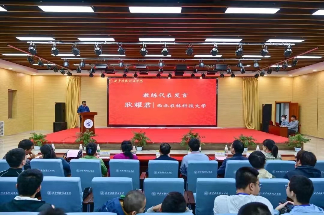随后,西安交通大学李纳川同学代表参赛队员宣誓,西安邮电大学周元哲老师代表裁判组宣誓,西北农林科技大学耿耀君老师代表参赛教练发言。